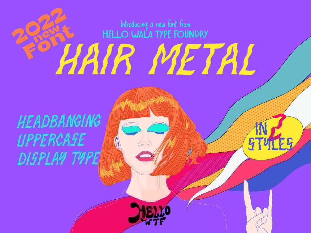 Hair Metal takes you back to a walk on the wild side. The decade is the 80s and the music is glam. Or maybe not, it just want to scream to the top of its lungs until it gets people's full attention. Yeah, this font screams for attention. It's low-brow and hates to wear ties.
